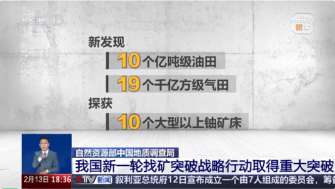 新一輪找礦突破戰略行動實施以來,各地聚焦大宗緊缺和戰略性新興產業礦產,圍繞重點成礦區帶和重要含油氣盆地,實現了一系列重大找礦突破,西部地區新增一批能源資源基地,中東部老資源基地資源基礎進一步夯實。