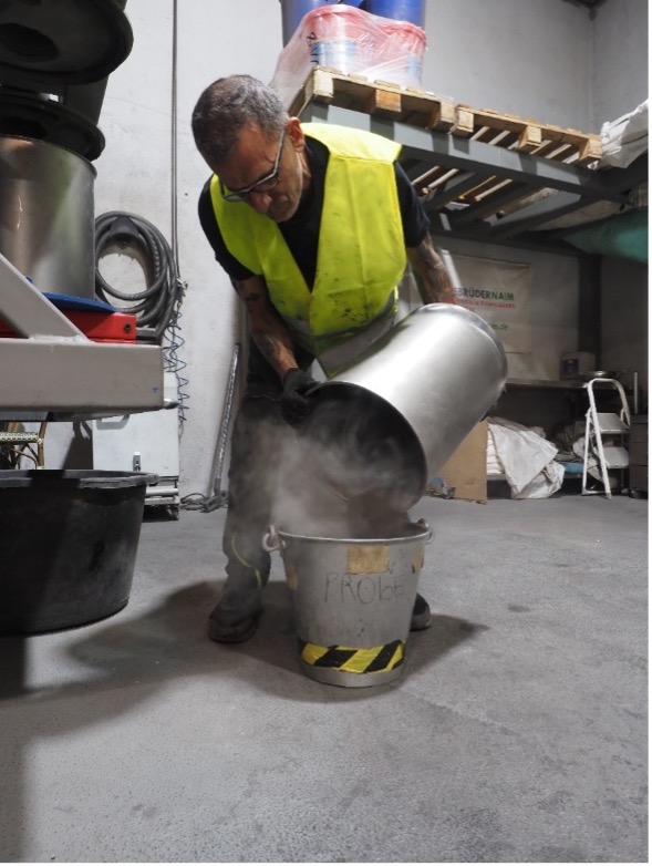 當(dāng)外殼廢料被送去進(jìn)行鋼材回收時(shí),有價(jià)值的塑制品整體材料會(huì)在球磨機(jī)中進(jìn)行研磨,然后進(jìn)行篩選、均質(zhì)、干燥和混合。粉末樣品用粘合劑壓制并分成三份。