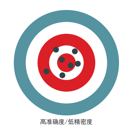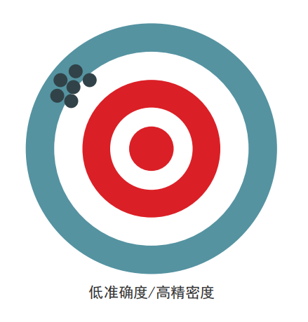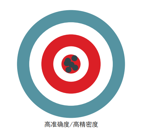 精密度是可重復性的一種度量,或者說一個檢測結果與另一個檢測結果的相近程度。準確度表明所獲得的結果是否準確地反映了實際情況(接近真值)。當然,我們希望任何分析技術都能提供優質的精密度和準確度。