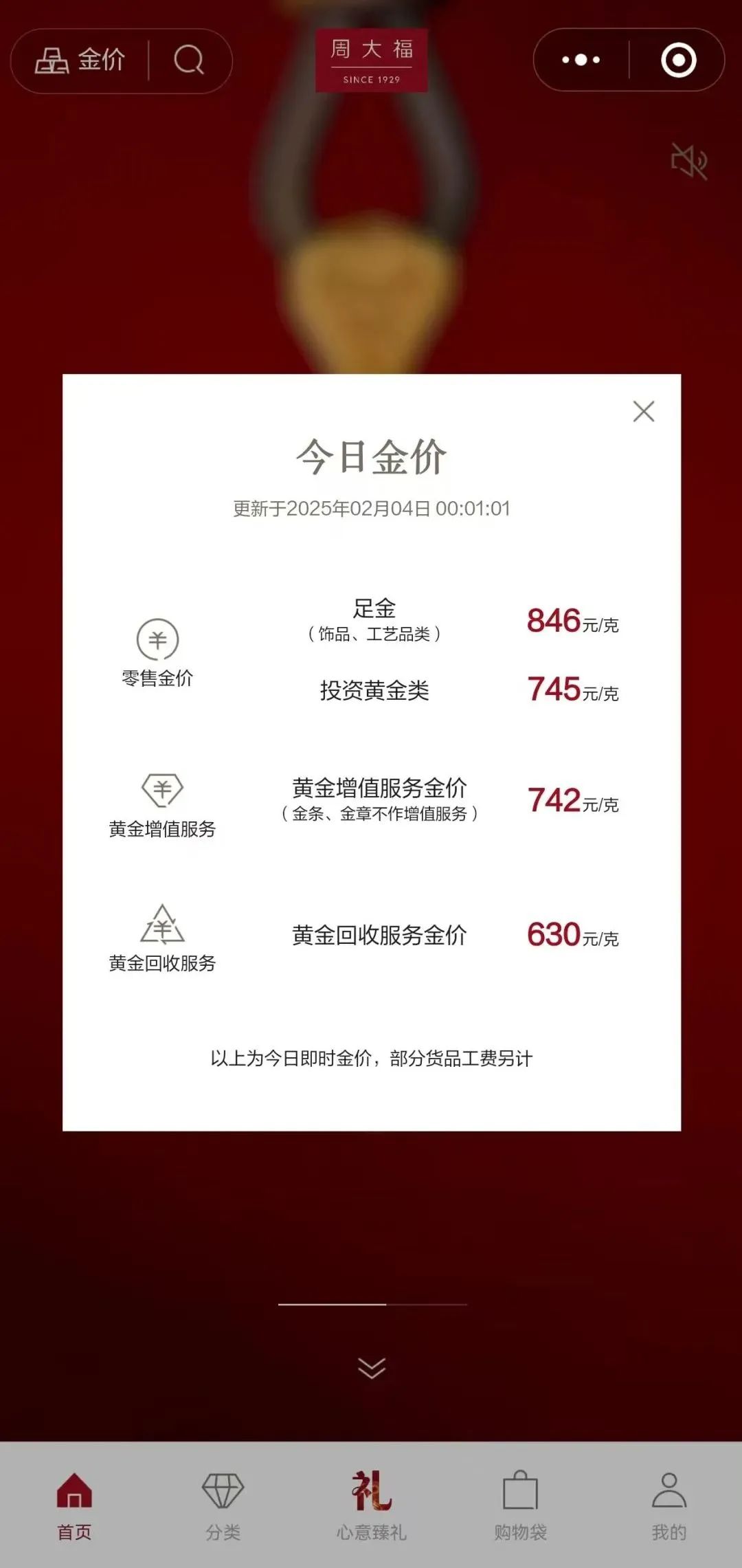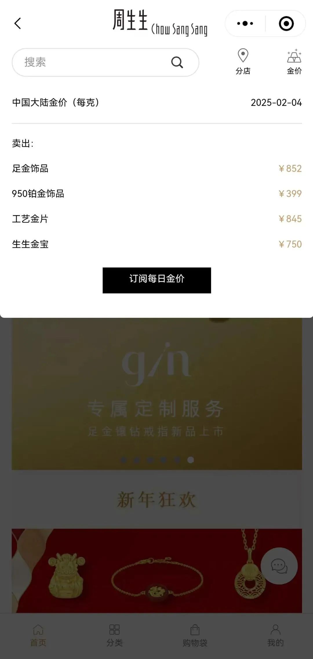 2月4日,周大福官網報出的足金飾品價格為846元/克,周生生報出的價格更是達到852元/克,均為品牌足金飾品售價的歷史高位。