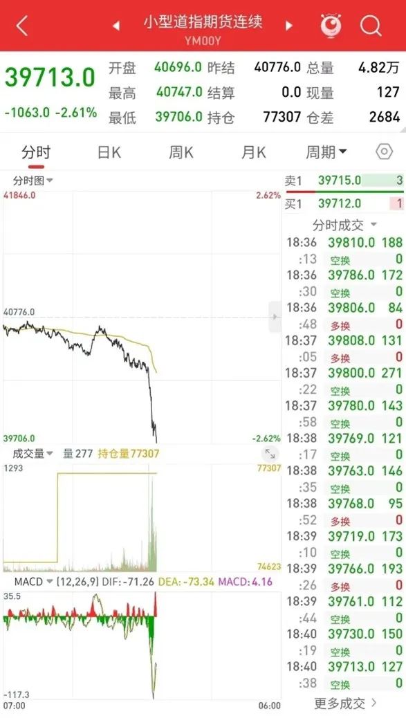 在中方連環反制之下,美指期貨應聲下跌超千點。
