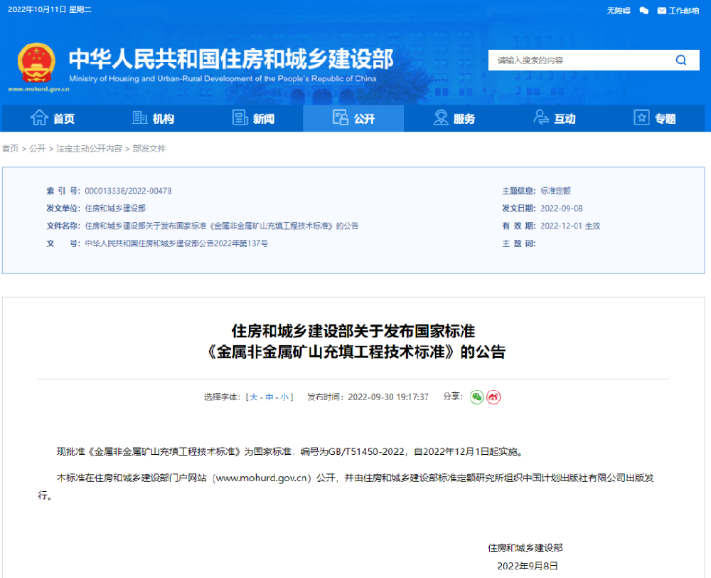 重磅來襲!我國首次發(fā)布金屬非金屬礦石填充工程技術(shù)標準